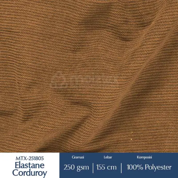 Elastane Corduroy ini menawarkan tampilan bertekstur yang rapi dan modern dengan feel lembut serta fleksibilitas yang nyaman saat dipakai. Dengan gramasi 250 gsm dan lebar 155 cm, kain ini cukup tebal untuk memberikan struktur namun tetap lentur berkat karakter rajutnya. Elastane Corduroy cocok untuk berbagai jenis pakaian seperti outer kasual, sweater ringan, cardigan, celana jogger, hingga dress bergaya cozy. Kualitasnya yang stabil dan tidak mudah melar membuatnya ideal untuk produk fashion yang ingin terlihat stylish sekaligus nyaman dipakai sepanjang hari.