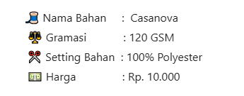 Terbuat dari bahan berkualitas, kain ini terasa lembut di kulit, nyaman digunakan, dan sangat cocok untuk berbagai jenis outfit. Efek kilau halus pada permukaannya menambah sentuhan glamor yang elegan, membuat tampilan semakin berkelas.