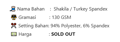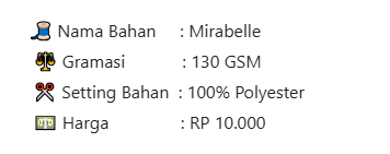 Kain ini tidak terlalu tebal cocok untuk daerah tropis seperti Indonesia. Pilihan warnanya juga lengkap. Cocok digunakan untuk gamis, tunik, dress, jumpsuit dan lainnya.