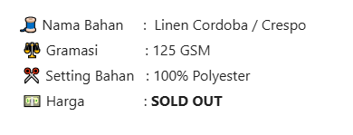 Linen Cordoba juga disebut Linen Crinkle karena memiliki kerut atau crinkle yang menarik.